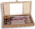 | | prix unitaire de | 1 à 5 | 5 à 10 | 10 et + | | 9.0 | 8.5 | 8.0 | | | Trousse à pinceaux. Les objets sont présentés à l’oblique quand elle est ouverte. Elle se ferme pour le transport. | | Taille | prix unitaire de | 1 à 5 | 5 à 10 | 10 et + | Fermée 34 x 13 Ouverte 34 x 31 | 15,0 | 14,0 | 11,0 | | | Boite à pinceaux. Coffret en bois vernis pour le transport des pinceaux. Dimensions intérieures : Longueur 22 cm, largeur 10 cm, hauteur 3 cm. | | prix unitaire de | 1 à 5 | 5 à 10 | 10 et + | | 11,0 | 10,0 | 9,0 | | | Support pinceaux. En plastique antidérapant pour disposer six ou sept pinceaux.